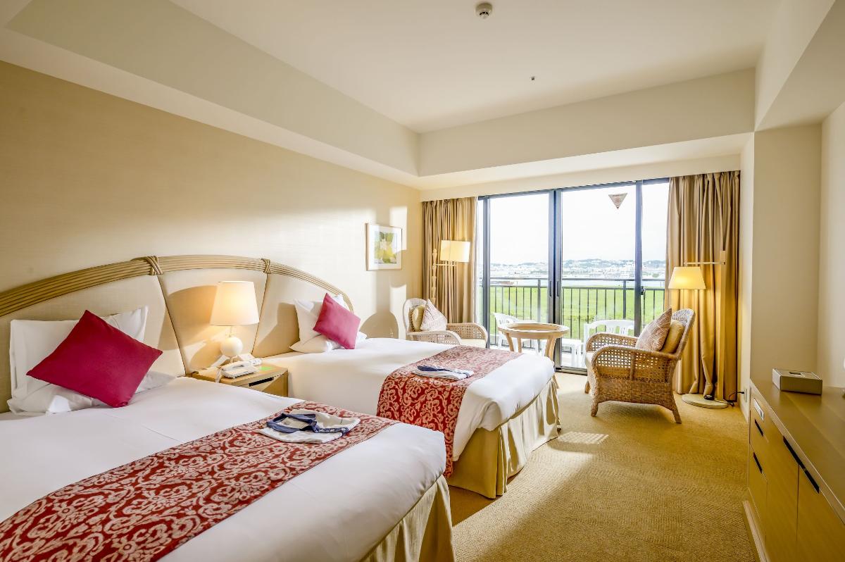 那覇市や南部観光へのアクセスが便利な美々ビーチいとまんが目の前のリゾートホテル。ナチュラルトーンのスタイリッシュなデザイン、リゾート感溢れるゲストルームが魅力。