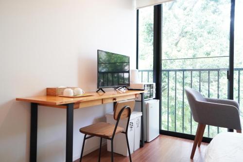 薄型TV、 共用バスルーム、 煙感知器、 消火器、 個別エアコン、 電気ケトル、 エレベーター利用