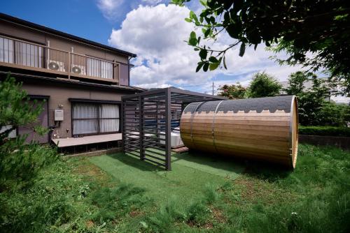 薄型TV、 談話エリア、 遮光カーテン、 エキストラトイレ、 カーペット、 洋服掛け、 煙感知器、 一酸化炭素警報器、 消火器、 動画配信サービス(Netflixなど)、 開閉可の窓、 電気ケトル、 快眠グッズ、 安全/セキュリティ対策、 サウナ、 バーベキュー設備、 ダイニングテーブル、 屋外家具、 一戸建て、 ゴミ箱、 ベッド近くにコンセント、 階段利用、 ケトル